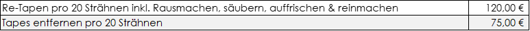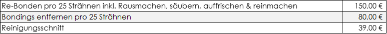 Optimieren Sie Ihre Extensions mit unseren professionellen Zusatzleistungen. Hier finden Sie unsere Preise für Re-Bonden, Reinigungsschnitt und weitere Services, die Ihre Extensions perfekt in Form halten.